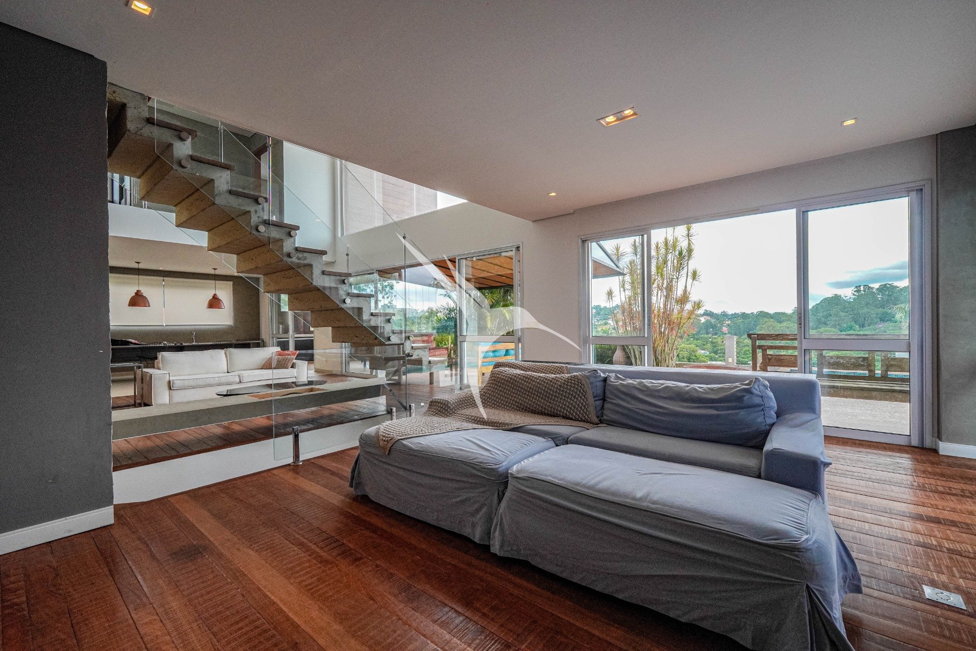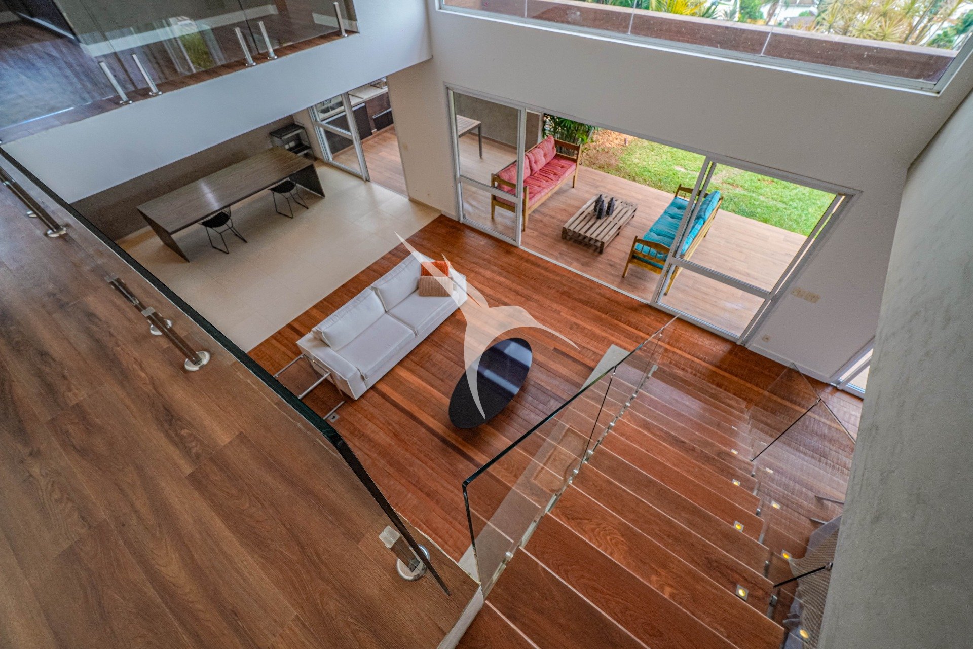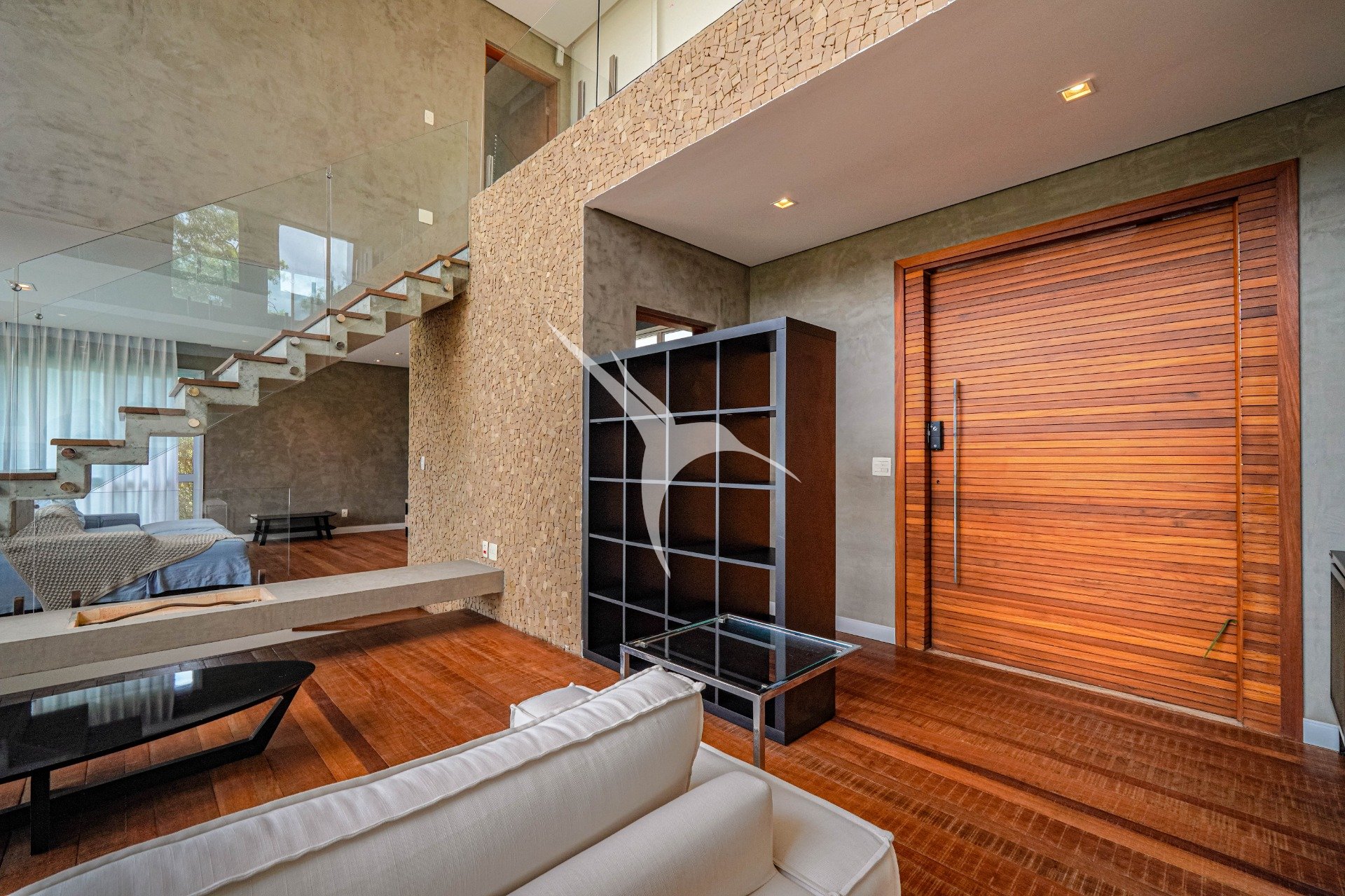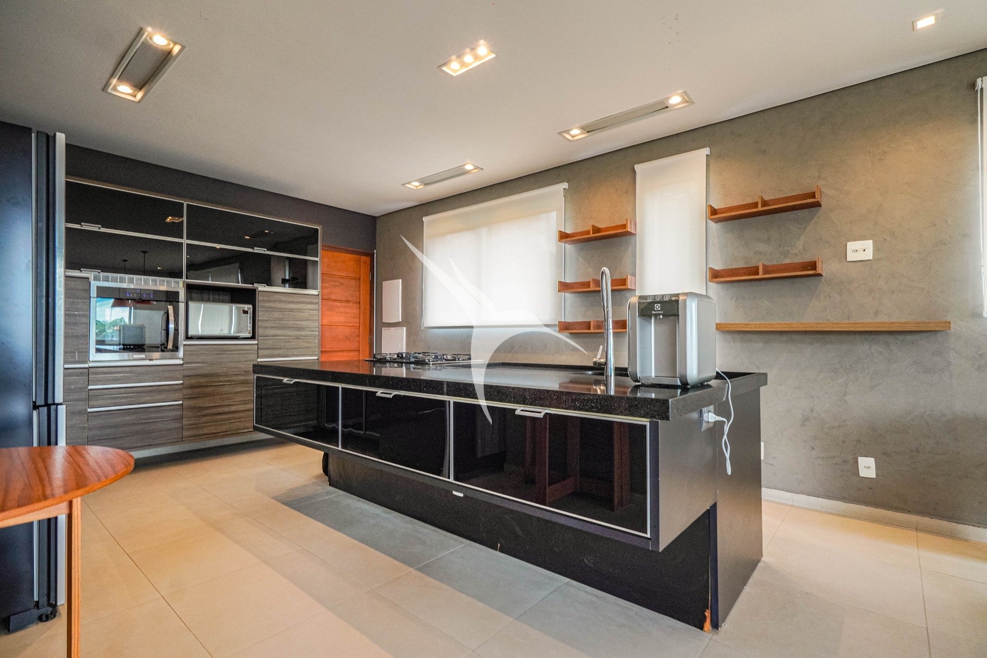 O projeto privilegia a amplitude. O pé-direito alto traz leveza aos ambientes e permite que a luz natural percorra toda a casa. O living foi desenhado para receber com elegância, com quatro ambientes integrados, criando um espaço fluido, acolhedor e perfeito tanto para o dia a dia quanto para momentos especiais.