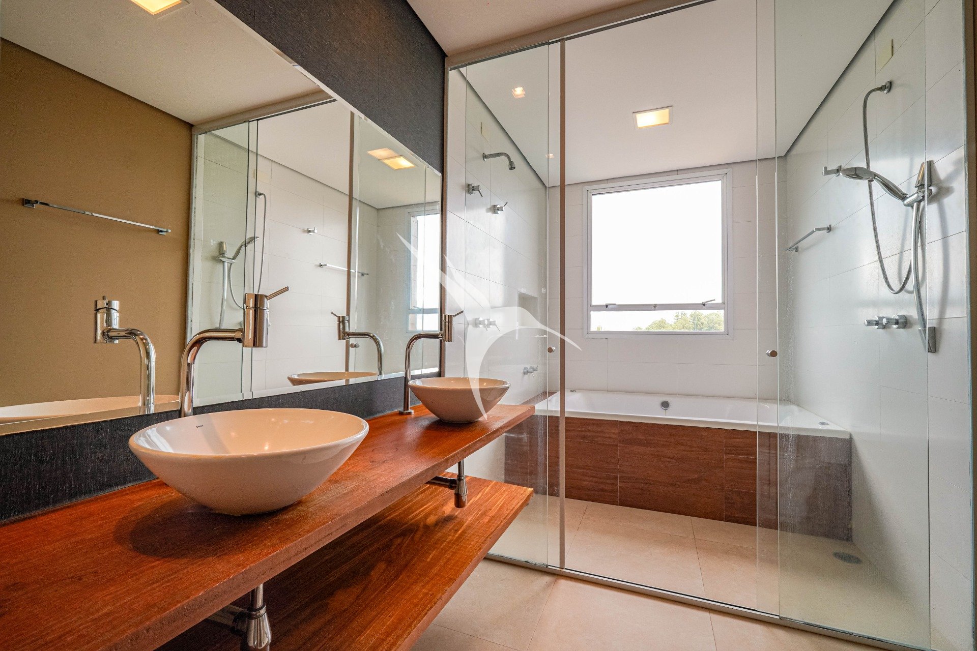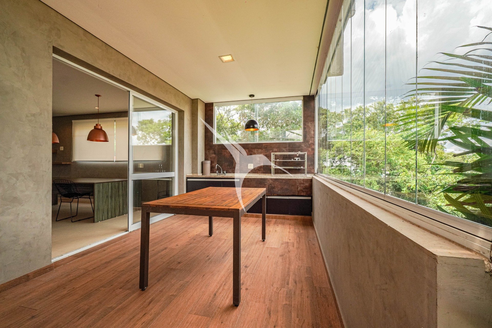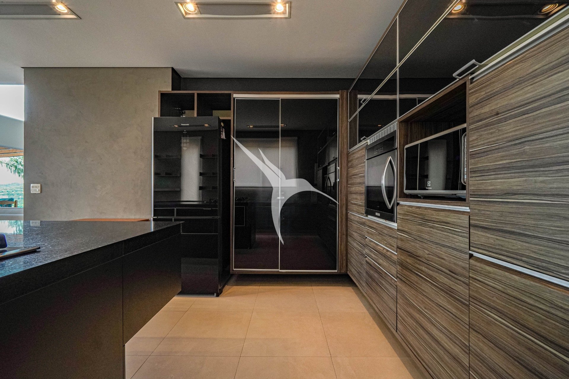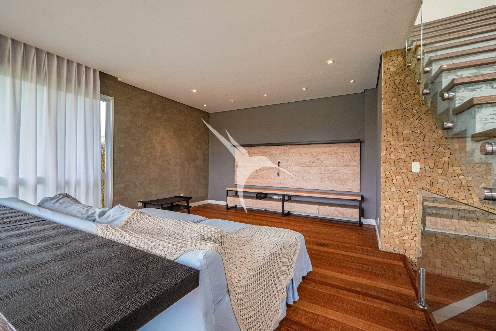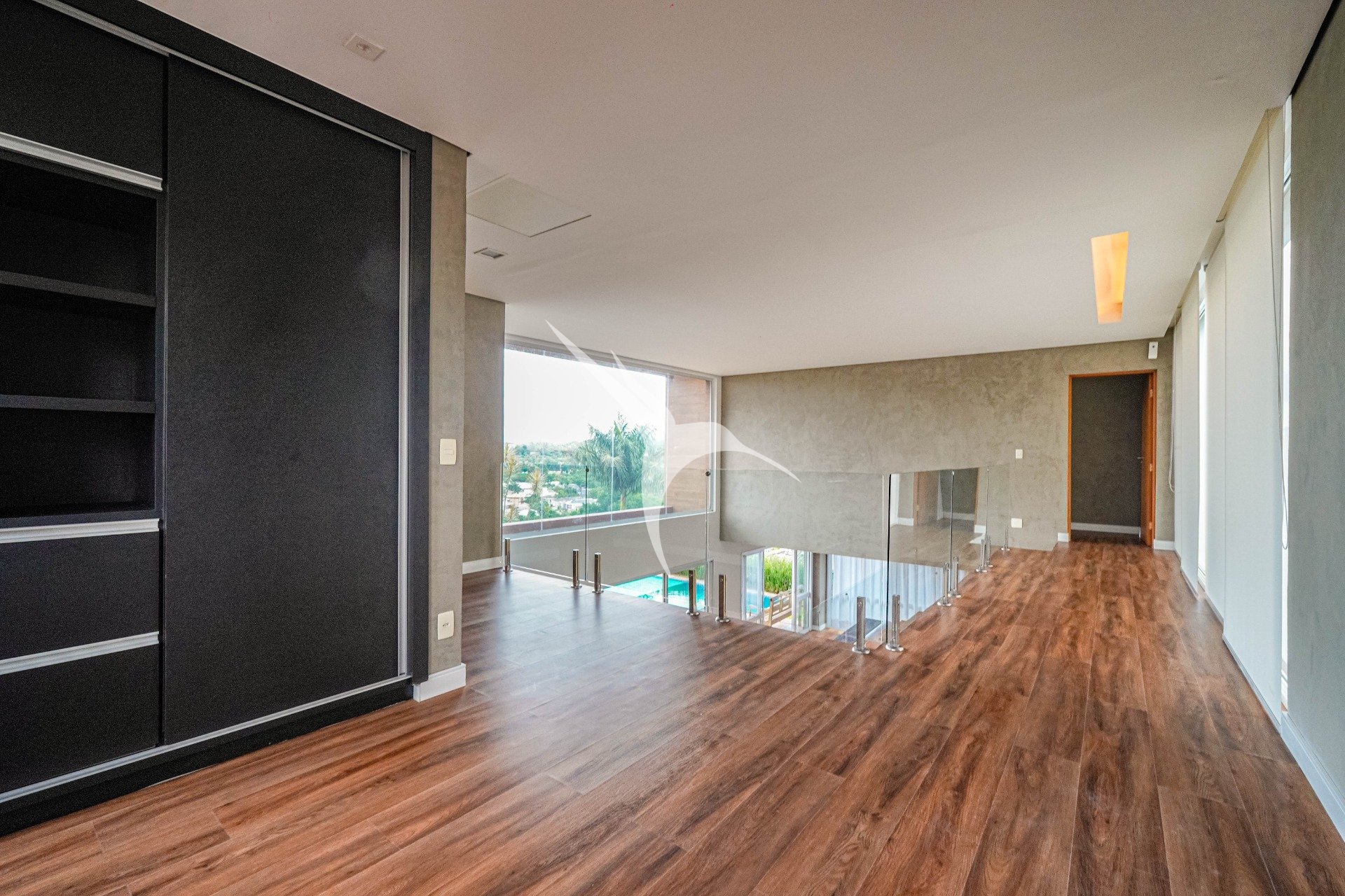 O projeto privilegia a amplitude. O pé-direito alto traz leveza aos ambientes e permite que a luz natural percorra toda a casa. O living foi desenhado para receber com elegância, com quatro ambientes integrados, criando um espaço fluido, acolhedor e perfeito tanto para o dia a dia quanto para momentos especiais.